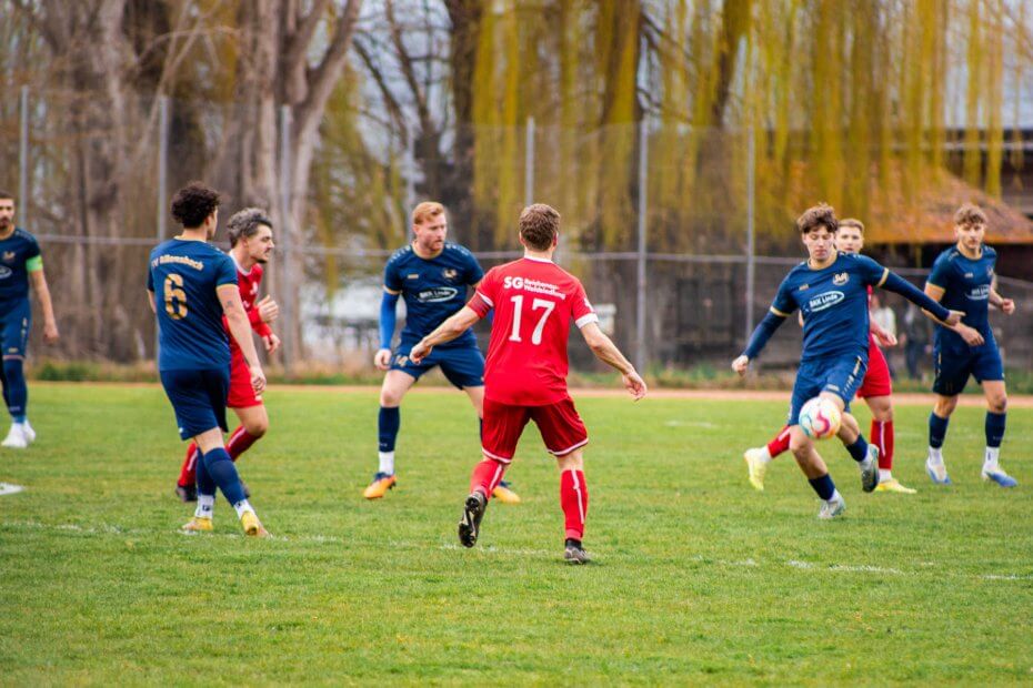 Die Anfangsphase des Derbys kann dann ganz klassisch als Abtasten beschrieben werden. Beide Teams waren darauf bedacht Fehler zu vermeiden. Nach einer Viertelstunde kam es dann zum ersten Aufreger. Manuel Blum eroberte den Ball in der eigenen Hälfte und schickte Laurenz Hiller auf die Reise. Dieser lief alleine auf das Gästetor zu, verfolgt von einem Verteidiger. Dieser bremste Hiller kurz vor dem Strafraum regelwidrig aus, weshalb der Torhüter den Ball entschärfen konnte. Doch leider blieb der fällige Freistoß samt Platzverweis für den Allensbacher Verteidiger aus. Dieser musste jedoch den Platz mit einer Verletzung verlassen.